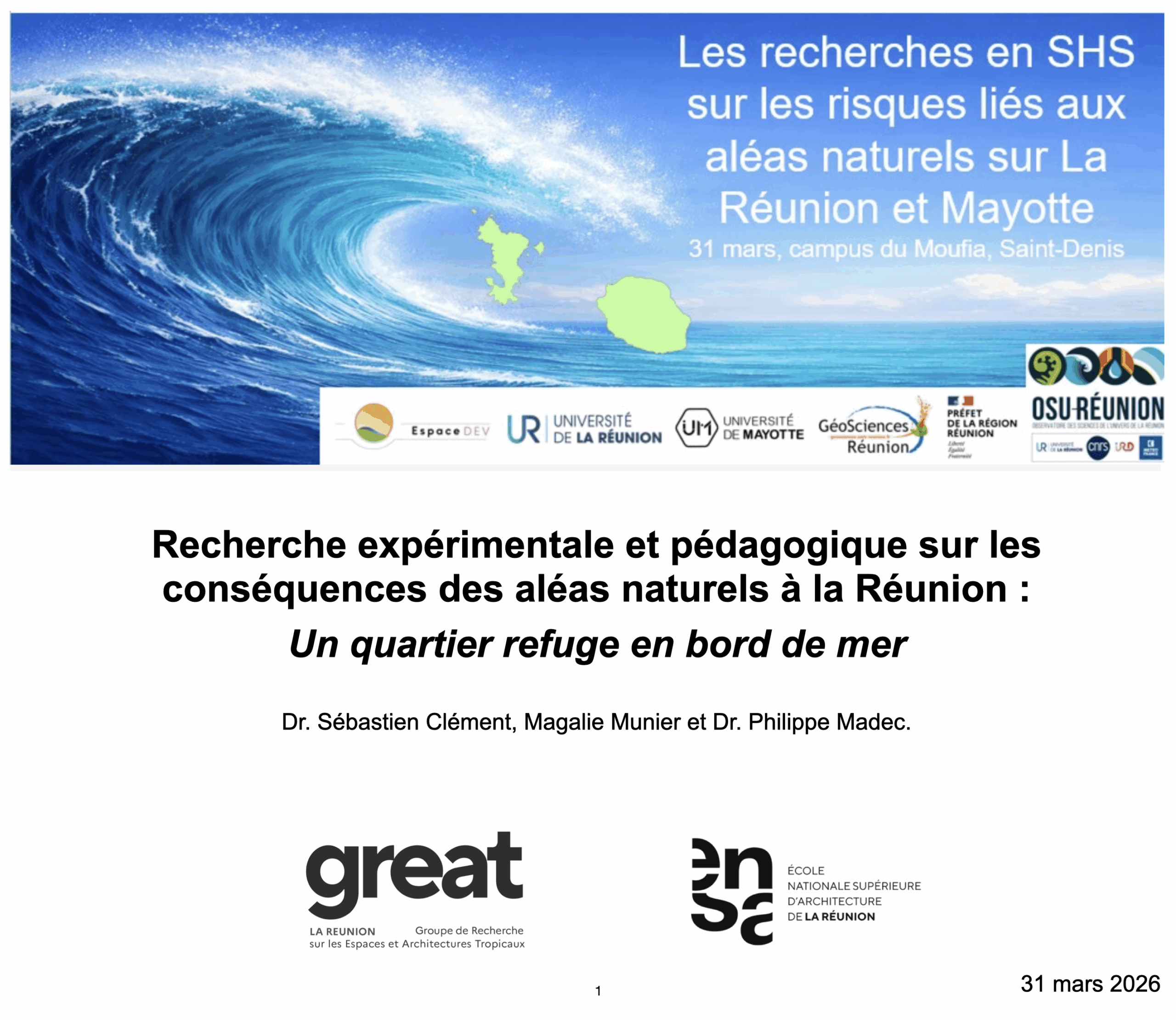 Très heureux d'avoir pu participer et communiquer avec mes collègues de l'ENSA-La Réunion Claire Prévot et Tanika Join à ces rencontres de recherche organisées par l'Ensa-Nantes Mauritius dans divers lieux au fil de la semaine. Cette semaine enrichissante nous a donné...